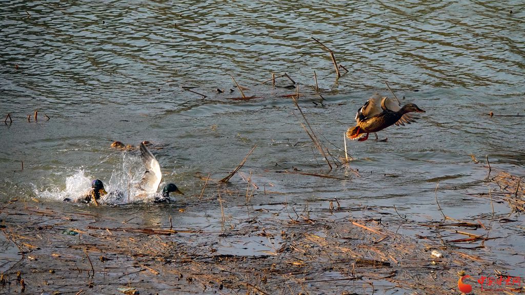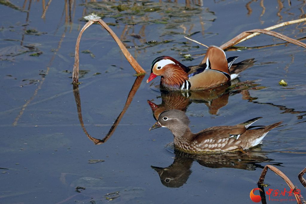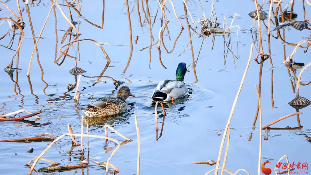 冬日的崇信縣龍澤湖,枯殘的荷葉、蓮蓬與枝干倒映水中,一株株枯荷挺著一身風骨靜靜地佇立在湖中,鳳頭鸊鷉、鴛鴦、秋沙鴨、赤麻鴨等成群結(jié)隊的候鳥在枯荷間嬉戲,舞出了不一樣的冬韻。