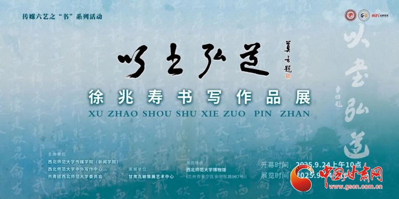 9月24日,“以書弘道——徐兆壽書寫作品展”在西北師范大學(xué)博物館一樓展廳開幕。此次展覽由西北師范大學(xué)傳媒學(xué)院(新聞學(xué)院)、中外寫作中心、共青團(tuán)西北師范大學(xué)委員會(huì)聯(lián)合主辦。