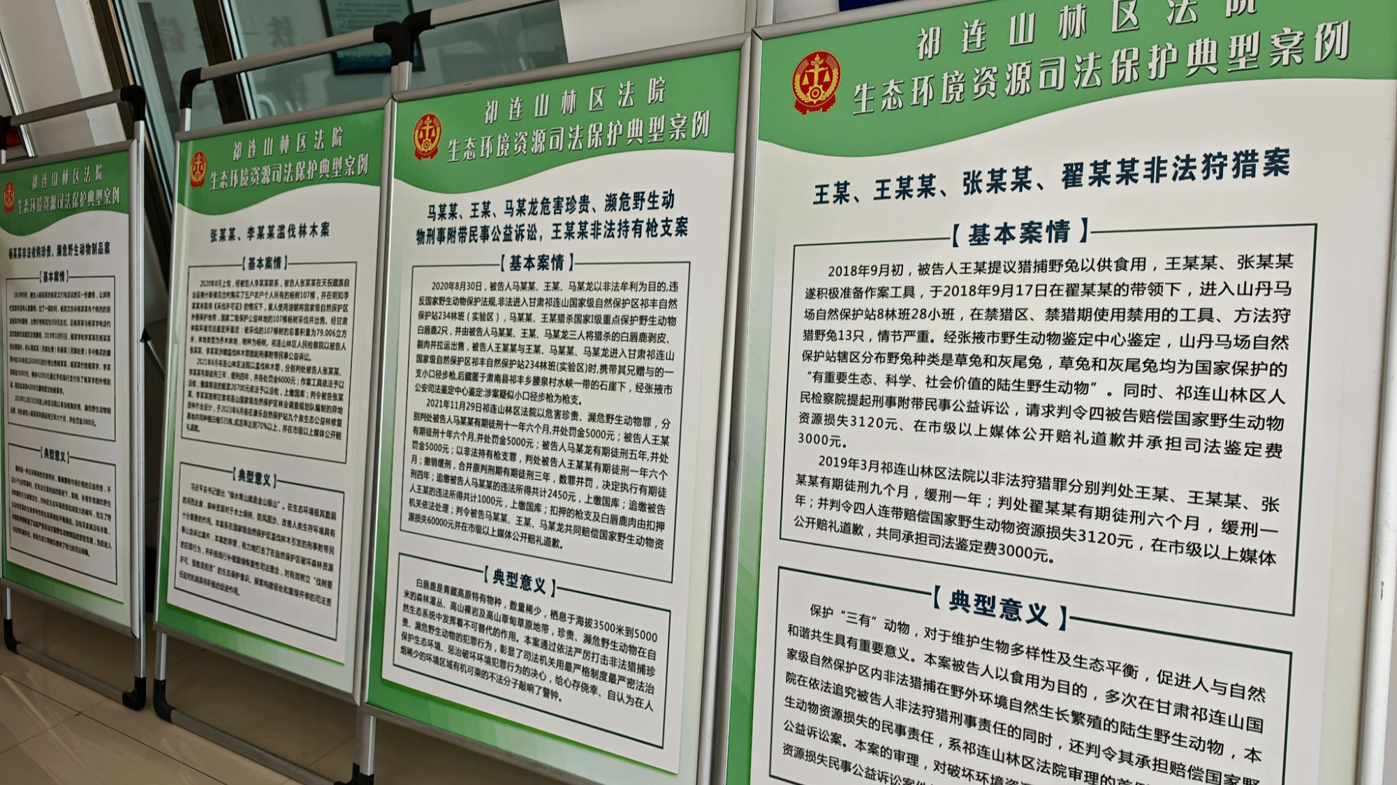 巡回審判庭的“法庭”從不在屋里。有時在油菜花田邊支起桌案,法槌一落,“王某前森林草原失火案”的庭審就成了最鮮活的普法課——這案子入選最高人民法院青藏高原生態(tài)保護典型案例,法官蹲在牧人身邊,指著草原防火設(shè)備說“咋用”,掰著指頭算“失火要擔啥責”,牧民們握著趕牧鞭聽得入神,連羊群都靜悄悄地伏在遠處。辦案點的展板上,非法采礦、危害珍貴野生動物等10個典型案例圖文并置,像10面透亮的鏡子,照得生態(tài)保護的法律紅線清清楚楚。