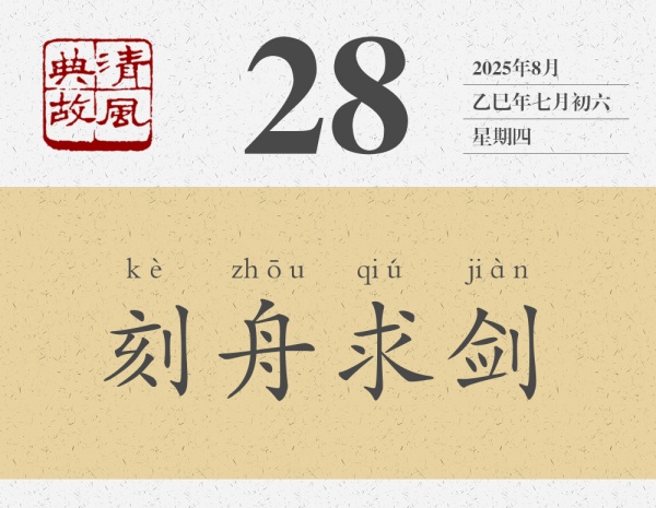 《呂氏春秋•察今》有一則寓言故事:“楚人有涉江者,其劍自舟中墜于水,遽契其舟曰:‘是吾劍之所從墜。’舟止,從其所契者入水求之。舟已行矣,而劍不行,求劍若此,不亦惑乎?”翻譯成現(xiàn)代漢語(yǔ)就是:楚國(guó)有個(gè)人坐船過江,他帶的劍從船上落入江中,于是他急忙在船邊上刻了一個(gè)記號(hào)說:“我的劍就是從這里掉下去的。”船靠岸以后,他就從船邊上刻有記號(hào)的地方下水,去找他的劍。船已經(jīng)在江面上走了一段距離,但沉入水底劍并沒有動(dòng),像這樣去找劍,不是太糊涂了嗎?