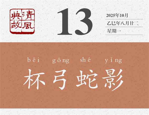 樂廣想,哪有這回事呢?當時,河南聽事堂墻壁上掛著一張弓,上面用漆畫著一條蛇。樂廣就想,這位朋友所見杯中之蛇,是不是這張弓的影子呢?于是,復(fù)原了上次喝酒的現(xiàn)場,讓客人坐在原來的位置上,將酒杯放在原來的地方上,問他“酒中復(fù)有所見不”,客人說“所見如初”。樂廣這才告訴他,杯中之蛇只是角弓之影而已??腿擞谑?ldquo;豁然意解,沉疴頓愈”。后世即以“杯弓蛇影”為典,比喻疑神疑鬼,自相驚擾。明人袁宏道詩《病中和黃道元至日禪寺夢悉詩》:“消愁莫問弓蛇影,對境聊觀夢幻身。”