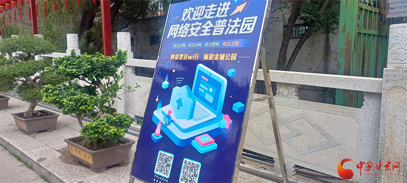 “我們這個(gè)主題公園的最大特色是上網(wǎng)免費(fèi),游客只要掃二維碼答題,就能使用免費(fèi)的WiFi學(xué)習(xí)法律知識(shí)。”西固區(qū)委網(wǎng)信辦副主任蔡繼萍指著金城公園門口的掃碼指示牌介紹,游客掃一掃,公園上網(wǎng)全免費(fèi)。