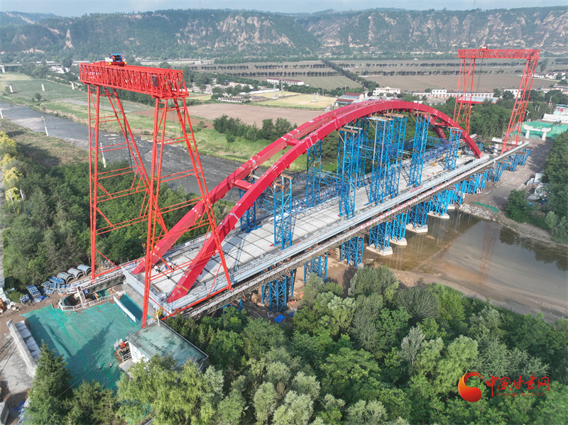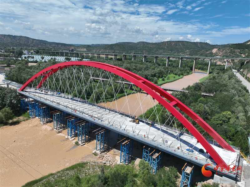 今年5月20日,長慶橋主體拱肋吊裝完成,大橋主體輪廓初現(xiàn),紅橋橫跨涇河,以極高辨識(shí)度被人們關(guān)注。