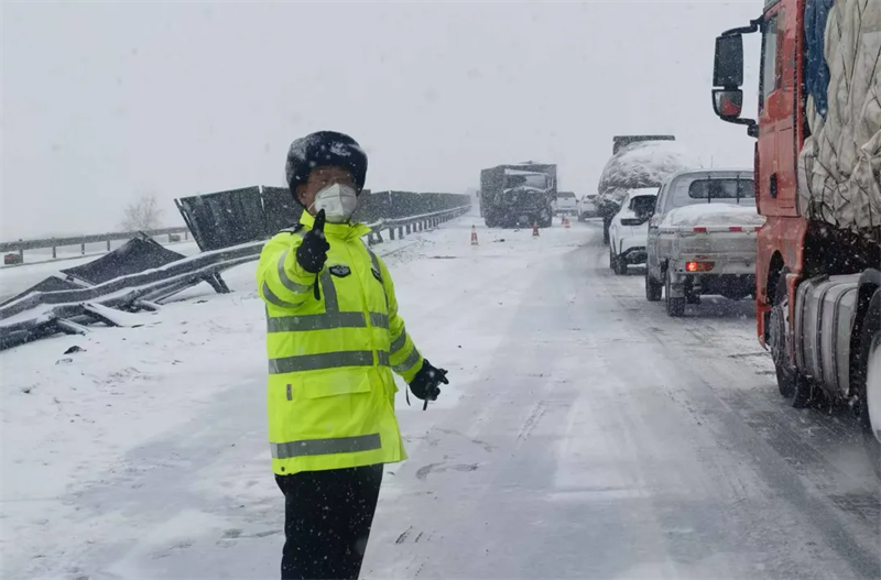 2024年2月17日,一場(chǎng)罕見(jiàn)的暴風(fēng)雪突襲連霍高速經(jīng)過(guò)的玉門(mén)、瓜州等地,致數(shù)萬(wàn)群眾被困冰天雪地。53歲的雒維兵身先士卒,帶領(lǐng)大隊(duì)全體民輔警落實(shí)遠(yuǎn)端分流、近端疏導(dǎo)等措施,配合“一路四方”各職能部門(mén)全力做好清雪除冰、應(yīng)急管制和現(xiàn)場(chǎng)救援各項(xiàng)工作。零下二十多度的嚴(yán)寒中,他一處處排查、一輛輛疏導(dǎo),連續(xù)奮戰(zhàn)36小時(shí),成功疏導(dǎo)車(chē)輛3萬(wàn)余輛、轉(zhuǎn)移受困群眾4000余人,確保了高速公路“生命線(xiàn)”的安全暢通。