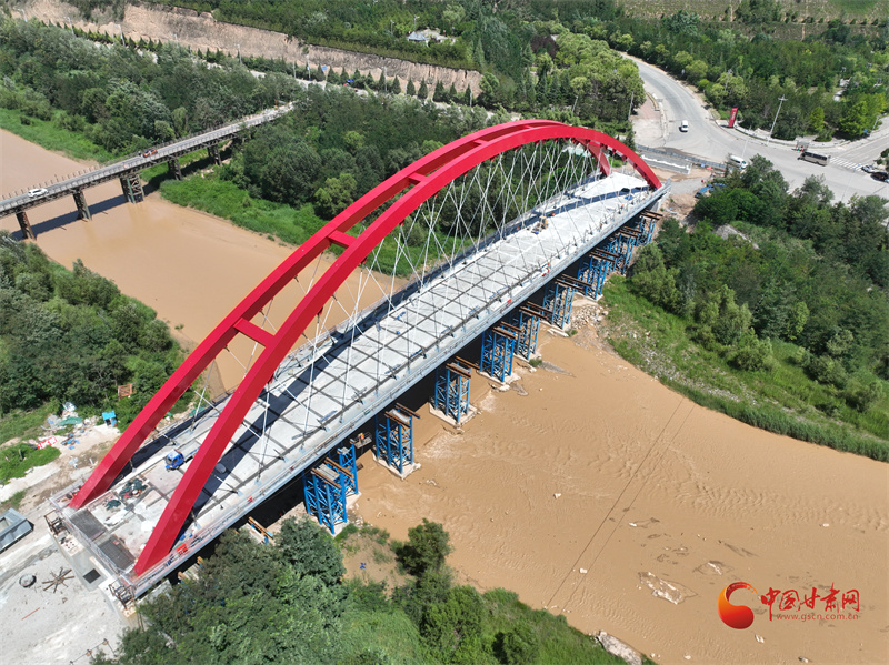 在陜甘交界的涇河之上,一座紅色鋼構(gòu)“提籃”正悄然成型。這座承載著近百年交通記憶的長慶橋,在拆除重建后,以甘肅省首座提籃式網(wǎng)狀吊桿下承式鋼箱系桿拱橋的身份,即將成為連接兩省三市的新動脈。