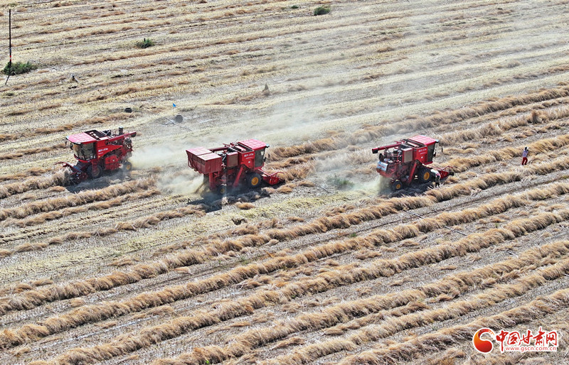 8月24日,在民樂縣新天鎮(zhèn)韓營(yíng)村千畝油菜種植基地,村民駕駛農(nóng)機(jī)在田間開展油菜籽搶收作業(yè)。