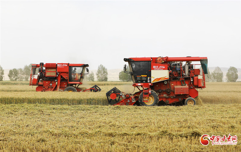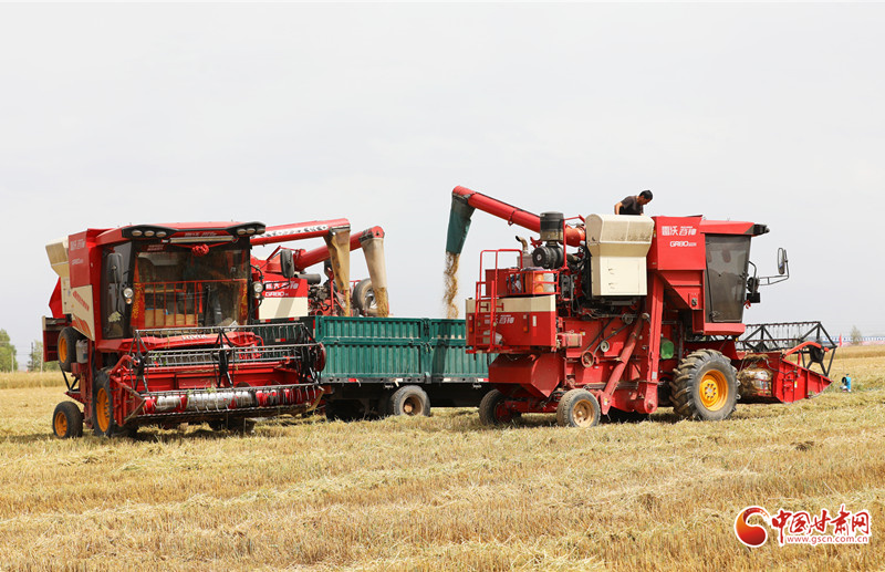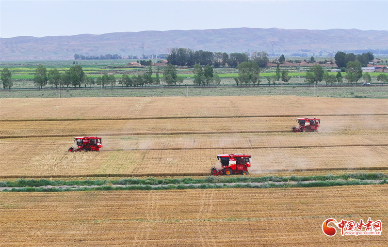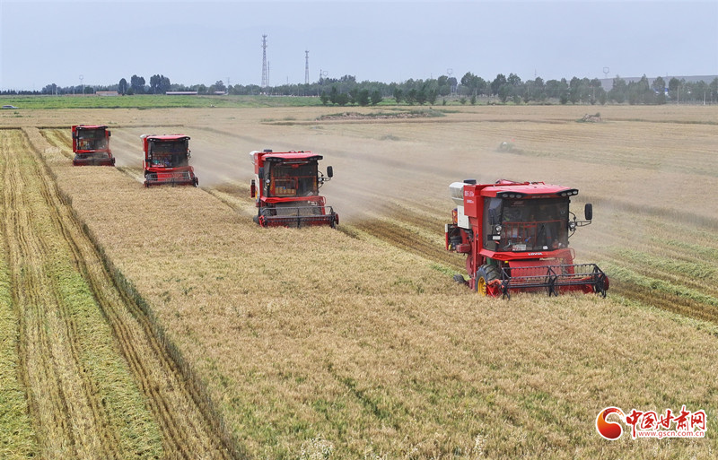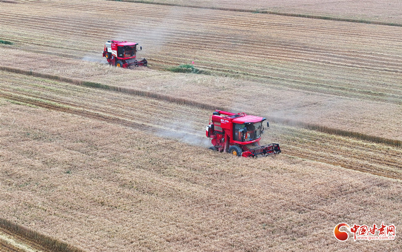 8月11日,在民樂縣民聯(lián)鎮(zhèn)顧寨村千畝連片小麥種植基地,農(nóng)機手們正在駕駛聯(lián)合收割機穿梭往返在麥田之中搶收小麥,確保小麥顆粒歸倉。