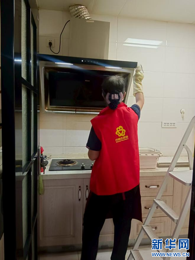 圖為蘭州市七里河區(qū)柳家營社區(qū)巾幗家政服務(wù)驛站工作人員上門進(jìn)行廚房保潔服務(wù)。(甘肅省婦聯(lián)供圖)