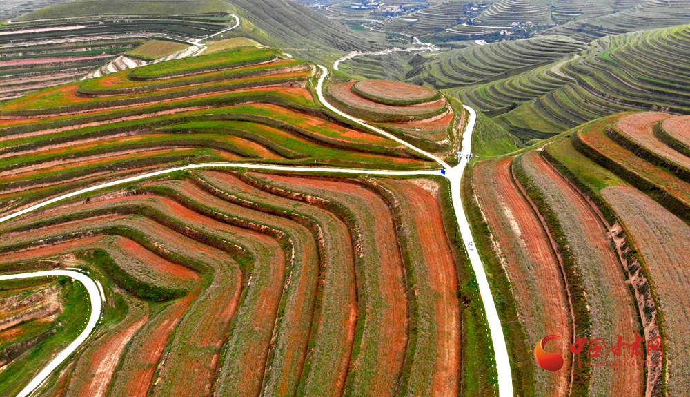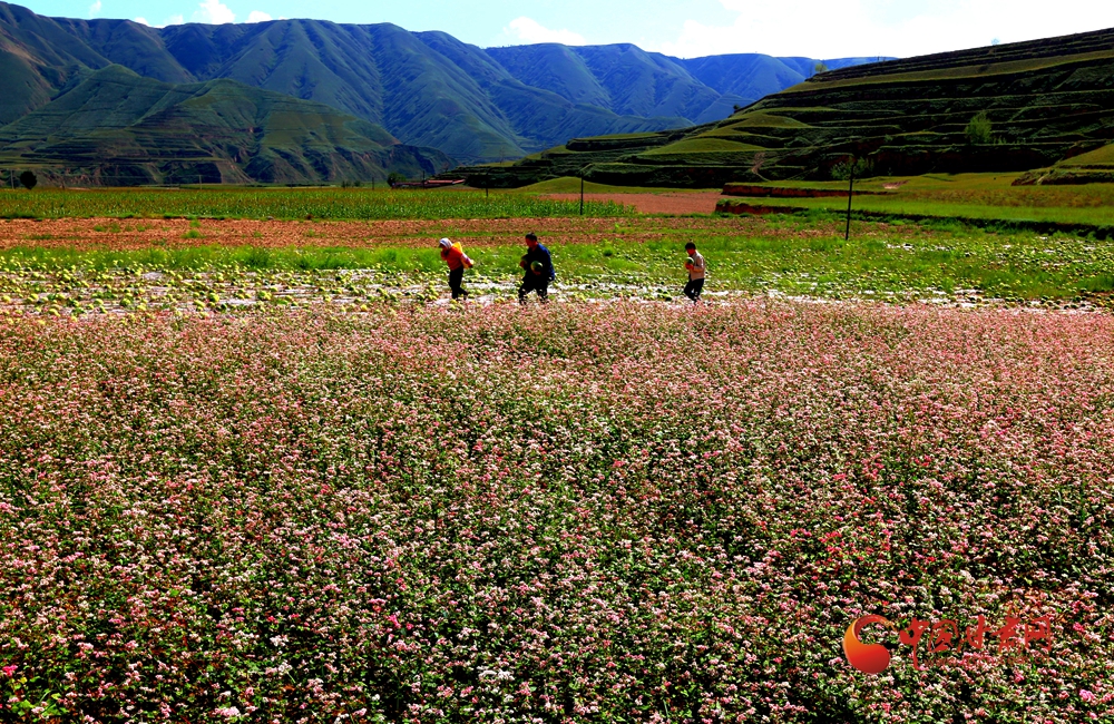 初秋時(shí)節(jié),會(huì)寧柴家門鎮(zhèn)樊郭村正值盛花期的百畝蕎麥競(jìng)相綻放,層層花浪隨風(fēng)起伏,清甜芬芳縈繞間蜂飛蝶舞,繪就一幅生機(jī)盎然的秋日畫(huà)卷。這片絢麗的梯田花海,不僅是當(dāng)?shù)?ldquo;以秋補(bǔ)夏、以復(fù)種促增收”戰(zhàn)略的生動(dòng)注腳,更是土地孕育豐收的希望詩(shī)篇。