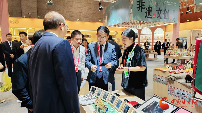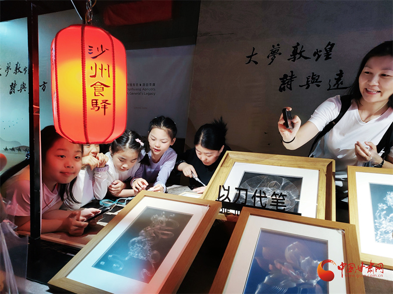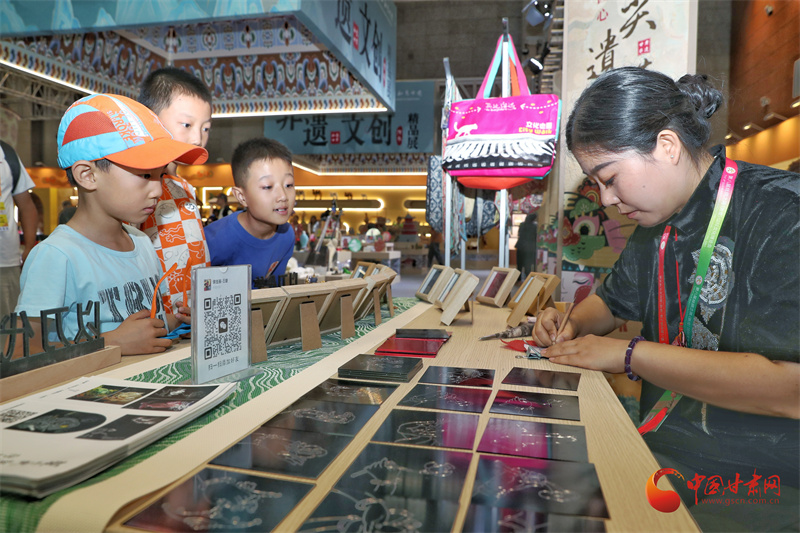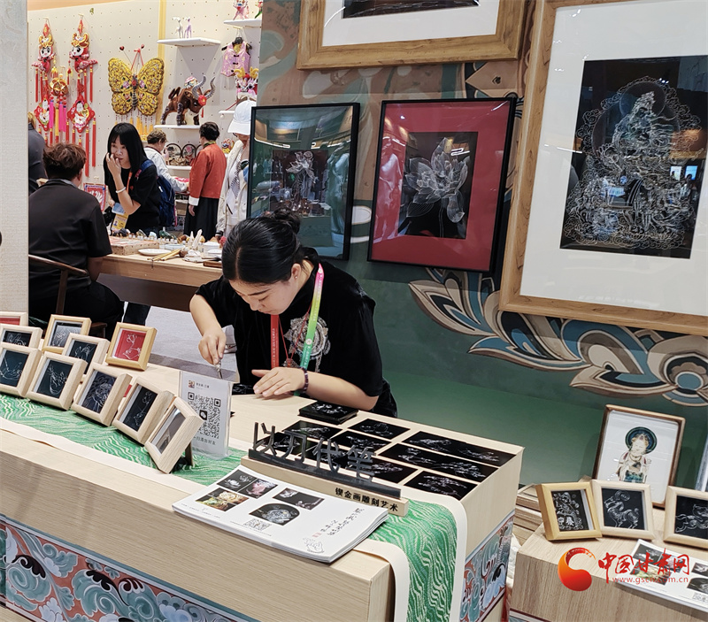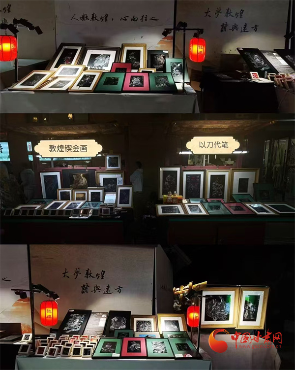 第八屆敦煌文博會(huì)非遺文創(chuàng)展區(qū),非遺藝人王婕正在展示鍥金畫(huà)技藝。通俗來(lái)說(shuō)就是在金屬板上刻畫(huà),每一個(gè)線(xiàn)條都要用刻刀在金屬板材上留下印痕。