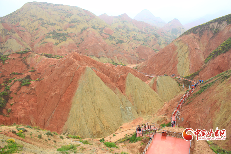 游客們乘坐觀光車沿途游覽,絲路霞光、九色丹青、丹頂攬勝等7個觀景平臺各具特色,山體色彩斑斕、紋理交錯,雨后更如水墨畫般淡雅別致,與北宋《千里江山圖》、元代《富春山居圖》的意境神似。