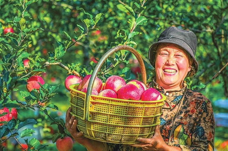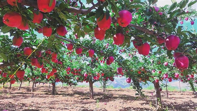 秋日平?jīng)?,天高云淡。百萬(wàn)畝果園里,紅果壓枝,甜香四溢。