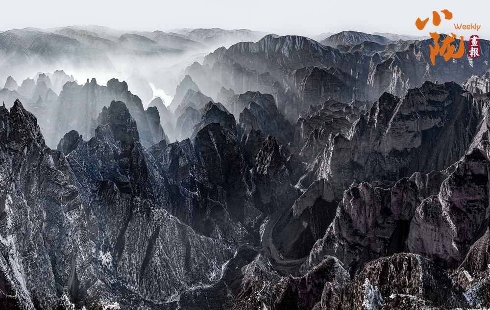 碧綠翠玉般的清清黃河水,蜿蜒流淌于險峻起伏的黃褐色沉積巖山地中,兩岸的山峰都像是被刀削斧劈過,峰頂形態(tài)各異、鱗次櫛比、明暗交錯、千姿百態(tài)。谷底,草木青翠、浪濤洶涌,舟船往來,汽笛聲此起彼伏,回蕩在耳邊。水面與山峰形成90度的直角,構成黃河上游罕見的山水奇觀。