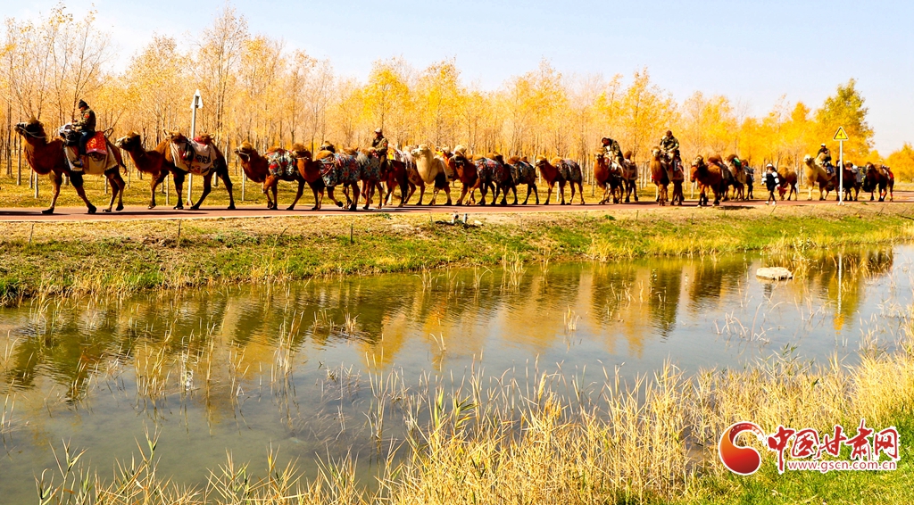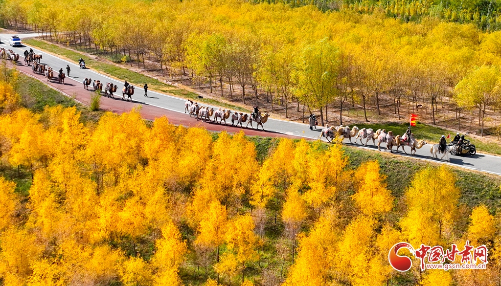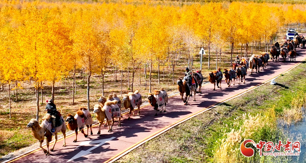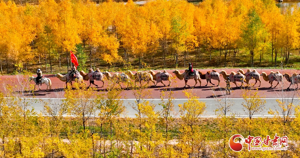 金秋十月,張掖市甘州區(qū)黑河林場萬畝胡楊林迎來流金季節(jié)。10月15日,一支駝隊行進(jìn)其間,領(lǐng)略這最美的時光。這片昔日亂石林立、滿目瘡痍的黑河亂石灘,如今已成為6萬畝的城市森林,游人、駝隊行進(jìn)其中,與金色林海共同構(gòu)成了一幅動人的生態(tài)畫卷。