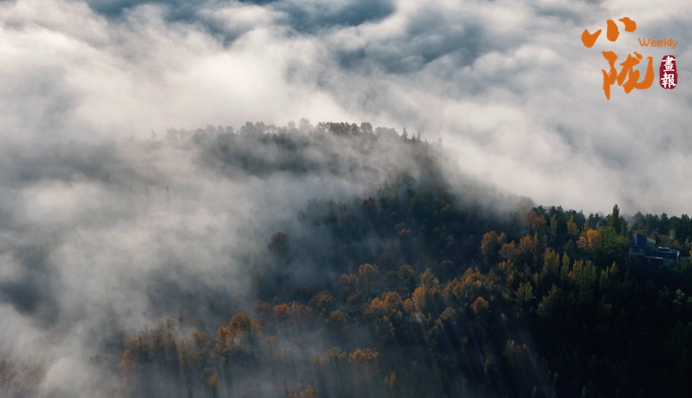 山林深處,秋意更濃。滿山遍野的銀杏葉換上了金黃的盛裝,宛如油畫般絢麗多彩。輕盈的云霧在山谷間流動(dòng),如同輕紗般籠罩著山巒,陽(yáng)光斜灑其上,宛如一片金色的海洋。