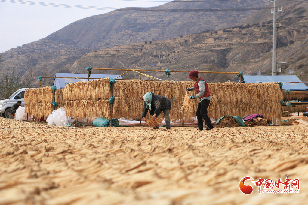 11月19日,岷縣維新鎮(zhèn)的農(nóng)戶們正忙著晾曬中藥材黨參。今年,該鎮(zhèn)種植的當歸、黨參、黃芪等中藥材喜獲豐收,眼下已進入黨參晾曬加工的高峰期。藥農(nóng)們搶抓晴好天氣,忙著沖洗、分揀和晾曬,洮河兩岸、合作社及農(nóng)家院落間,處處呈現(xiàn)一派繁忙景象。