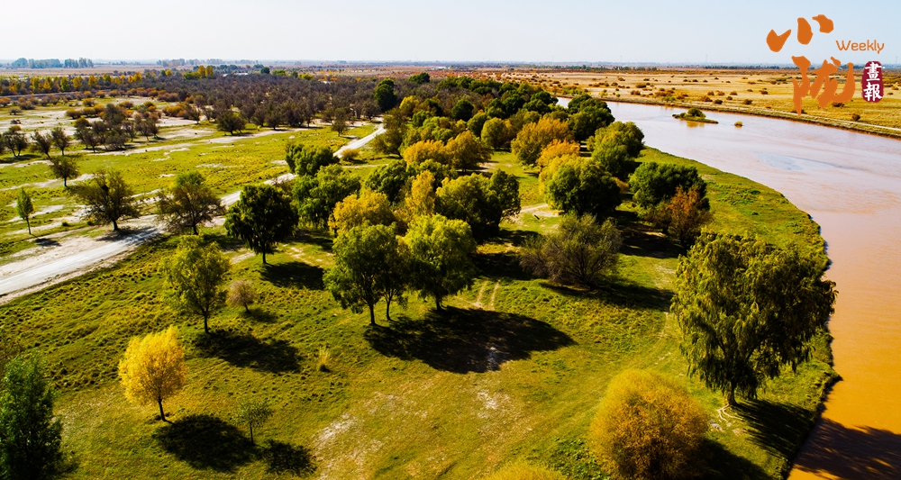 河堤兩岸各種樹木及灌木疊翠流金,綿延數(shù)里;碧波蕩漾,林鳥相依,呈現(xiàn)出獨具特色的沙漠濕地風(fēng)貌。