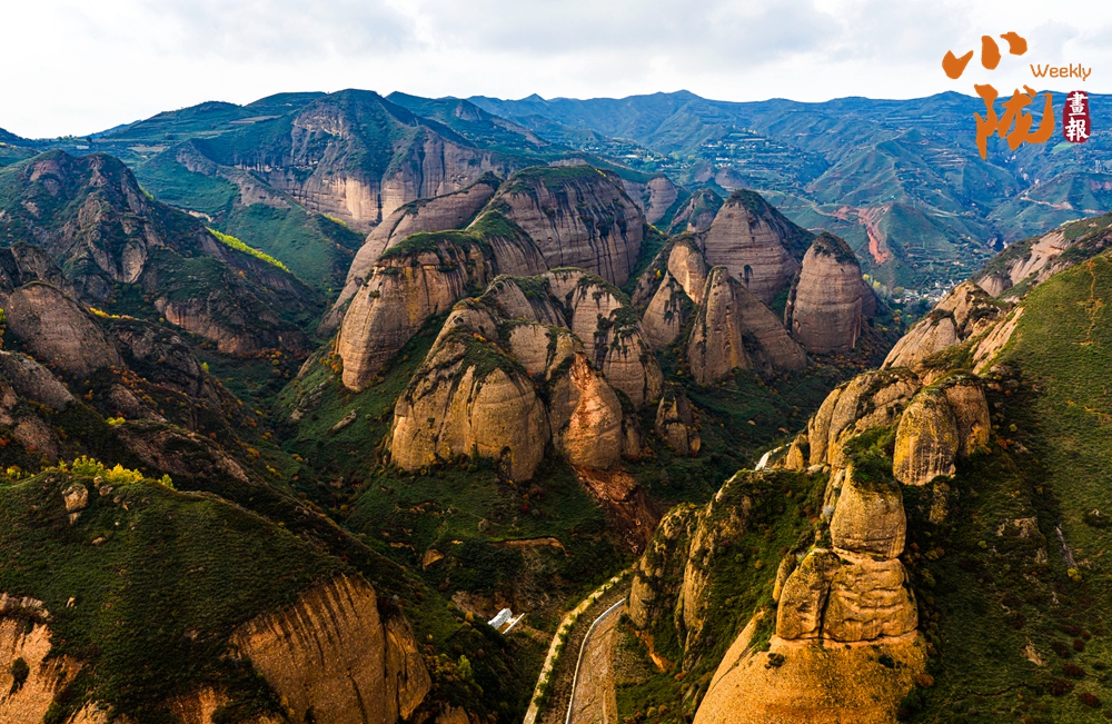 遠遠望去,山谷間、山巖上,一簇簇、一片片墨綠色草叢,將丹霞的紅、初冬的彩、山體的褐輕輕暈染,構成一幅美麗的冬日美景。