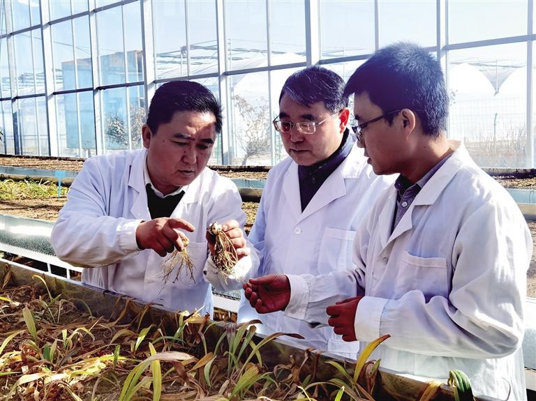 蘭州百合優(yōu)質(zhì)種源高效開(kāi)發(fā)關(guān)鍵技術(shù)“揭榜掛帥”項(xiàng)目承擔(dān)方查看百合生長(zhǎng)情況