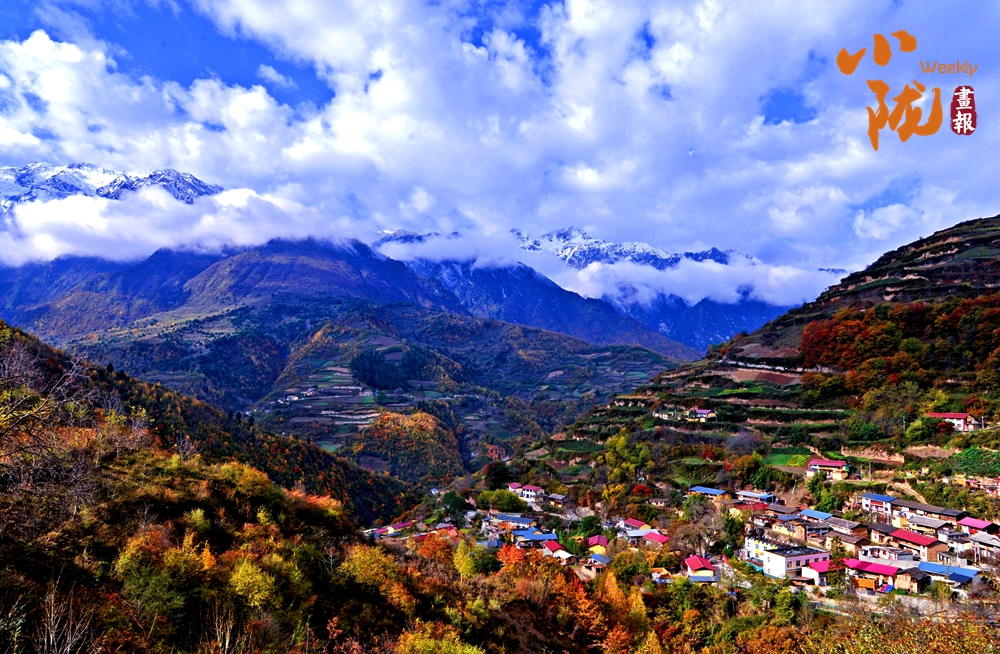 在溝谷深處,依山而建的寨房點(diǎn)綴在斑斕色彩之中。藍(lán)天白云、炊煙裊裊,門前屋后樹木成景……一切都是最貼近生活的模樣。
