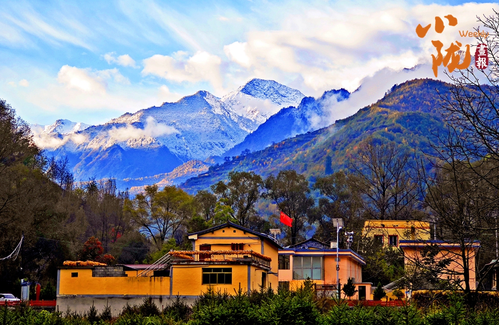 遠(yuǎn)處的雪峰與近處的彩林、藏式民居融為一體,形成一幅和諧畫卷。在這里,每一步都是一幅畫,每一眼都是一首詩(shī)。